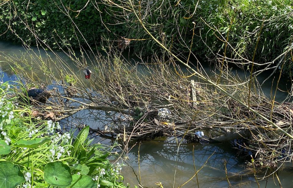 Rubbish stuck in a branch through the Highland Park Estuary. Photo Supplied
