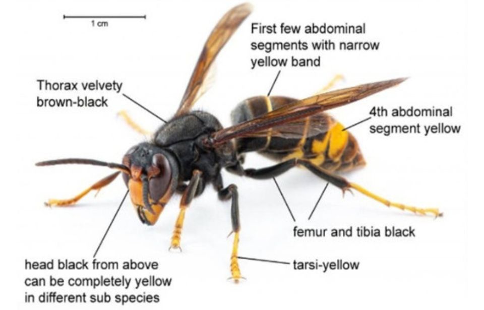 Identification guide on spotting a yellow legged hornet. Image: Supplied