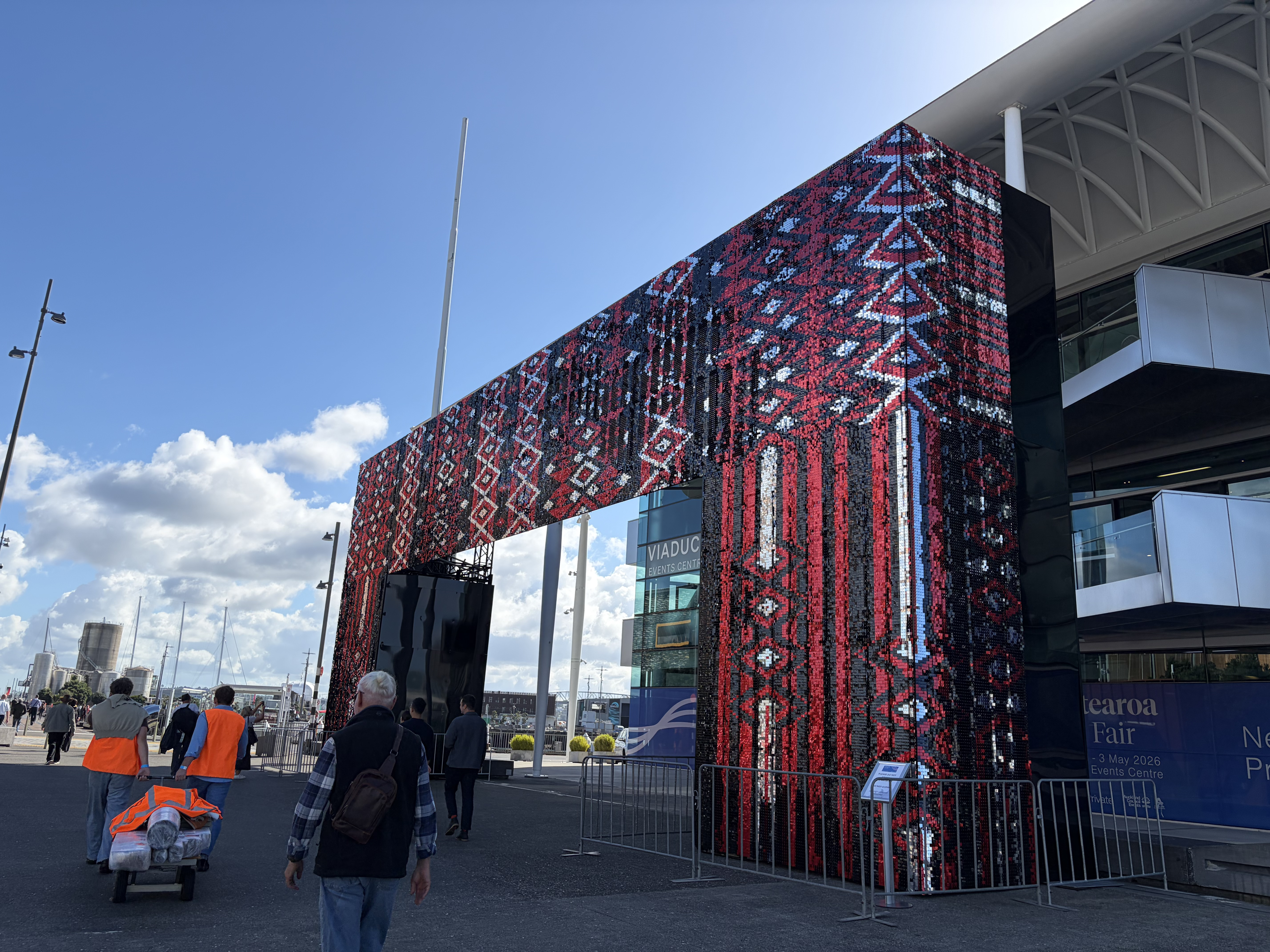 Large-scale sculptures by Māori and Pacific artists will be at the Viaduct Harbour until next week as part of the Aotearoa Art Fair Sculpture Trail.